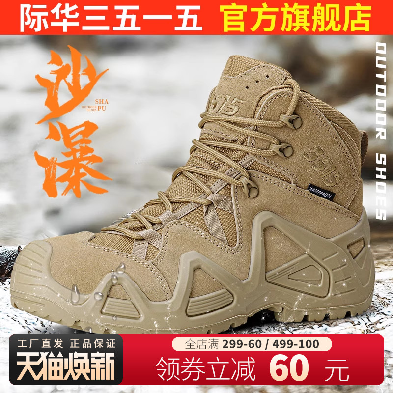 Jihua 3515 strong outdoor waterproof hiking shoes, men's anti-puncture training boots, wear-resistant non-slip hiking shoes, desert boots