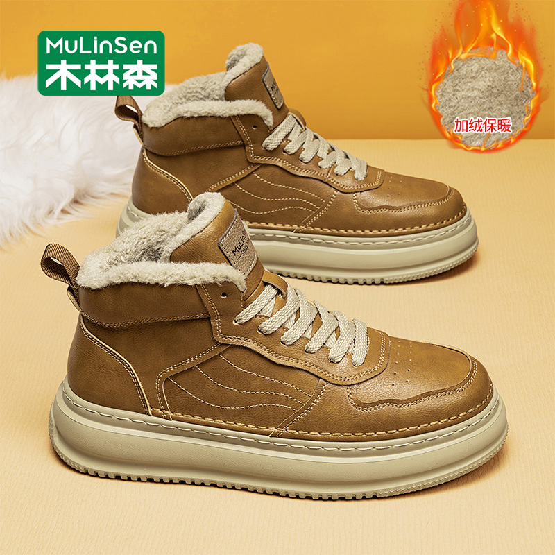 Mulinsen cotton shoes, men's winter fleece sports and leisure high-top board shoes, men's fur and fur integrated Northeast warm snow boots