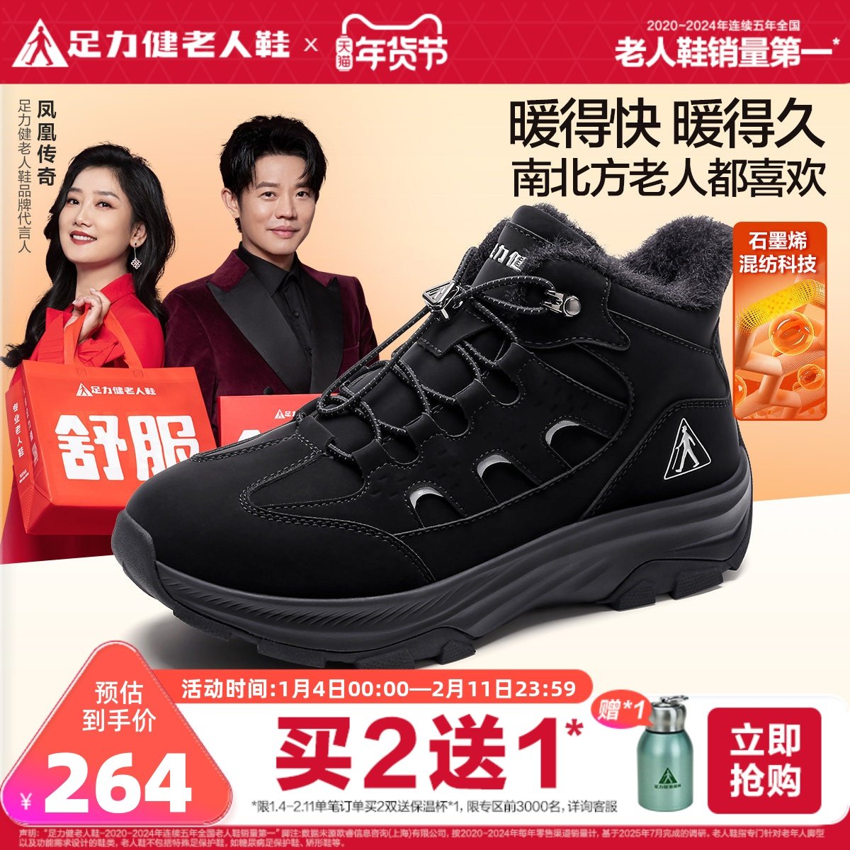 Foot strength shoes for the elderly, new products in the winter of 2025, cotton shoes, fleece warm shoes, snow boots, outdoor sports dad shoes