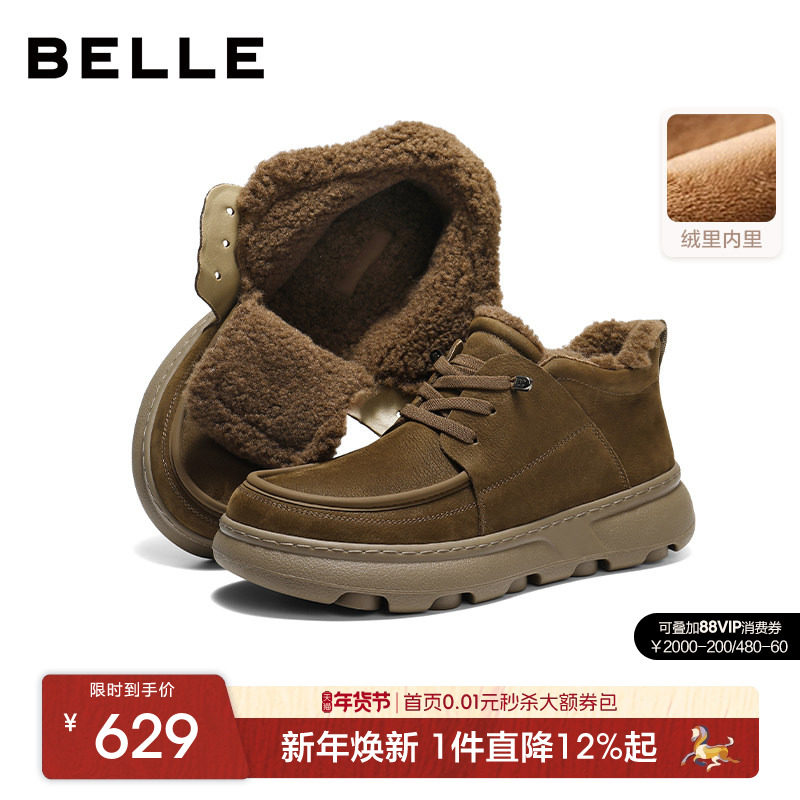 Belle Men's Casual Business Soft Sole Leather Shoes Men's Winter New Commuter Black Office Shoes Fleece 8CS01DM3