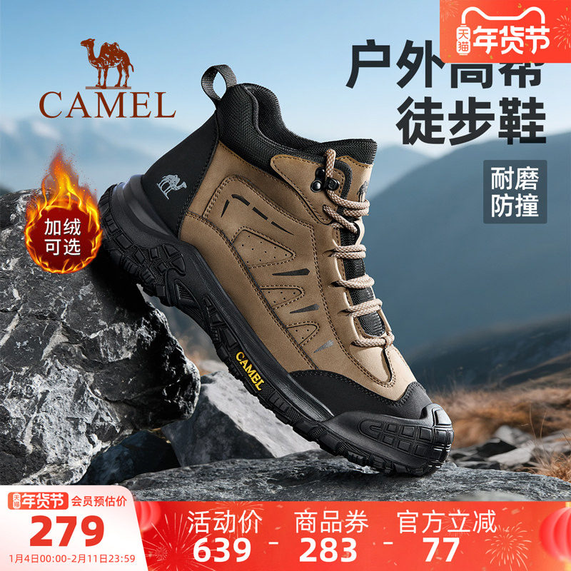 Camel men's shoes, high-top shoes, 2025 winter new fleece cotton shoes, non-slip outdoor hiking shoes, sneakers, men