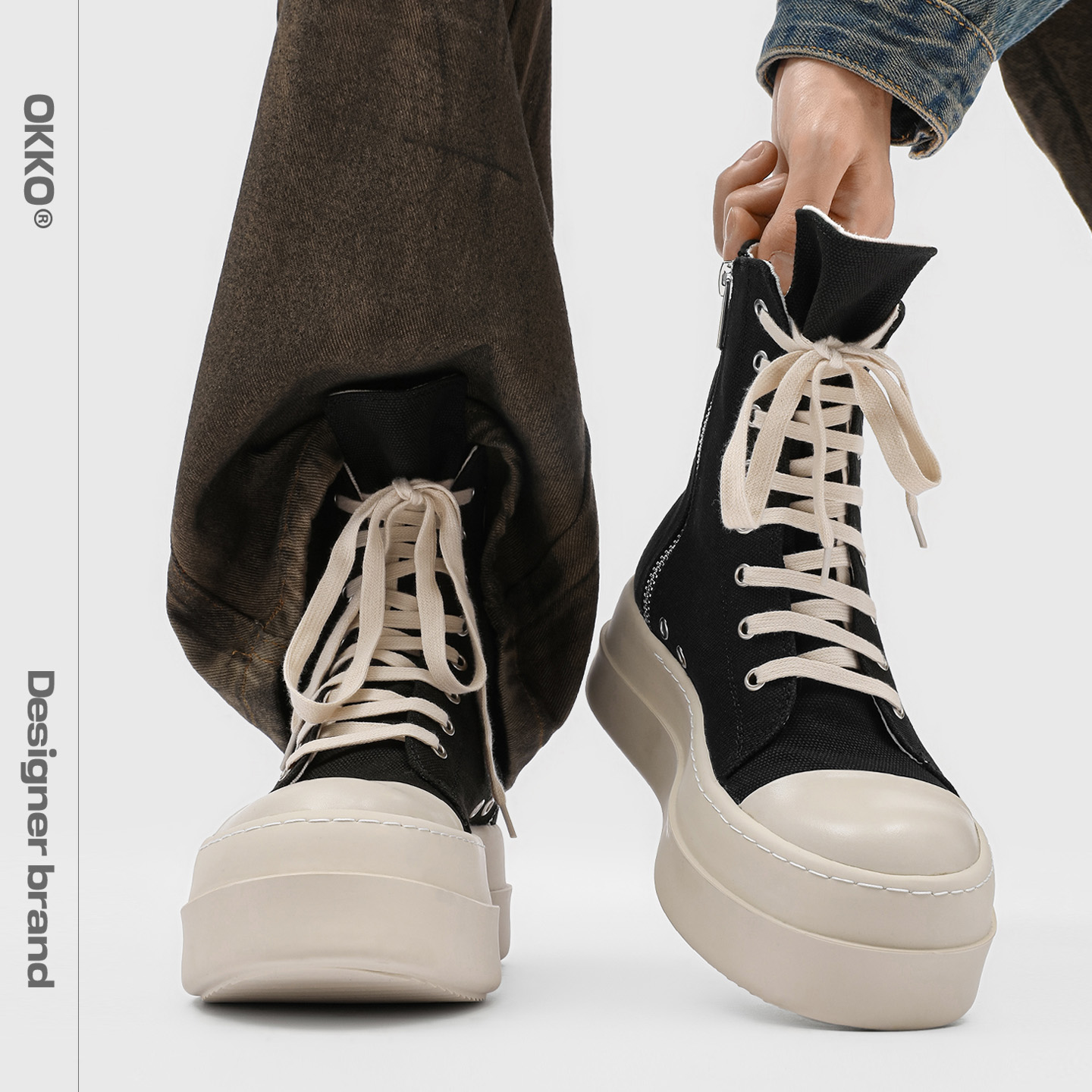 2025 new ro shoes, milk-scented soles, high-top canvas shoes, fringed couples, the same thick-soled casual sports trend shoes for men