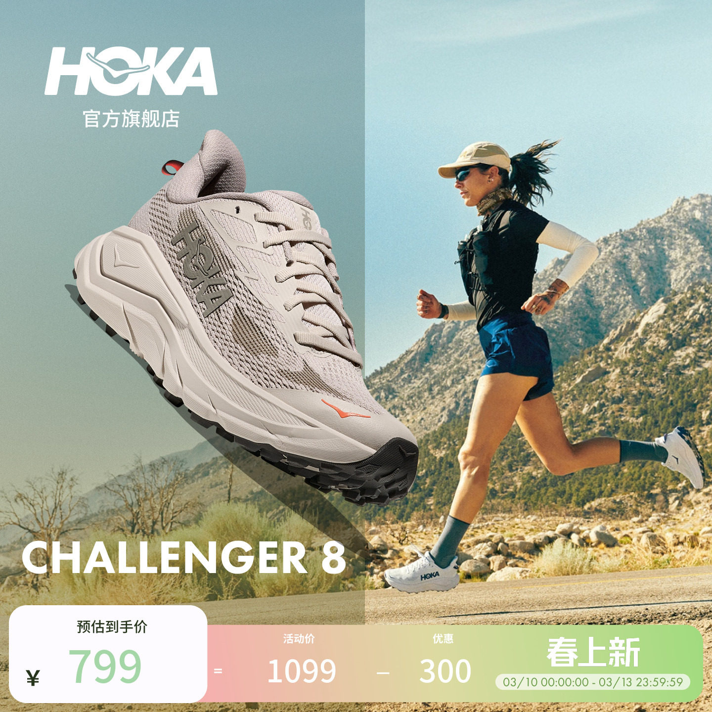 HOKA Women's Spring Challenger 8 All-Terrain Running Shoes CHALLENGER 8 Lightweight Cushioning Outdoor