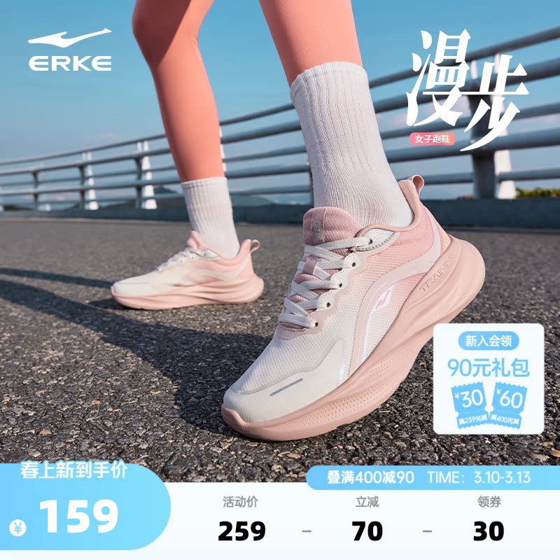 Strolling Hongxing Erke running shoes, women's shock-absorbing soft-soled skipping rope shoes, spring new mesh sneakers, lightweight women's shoes