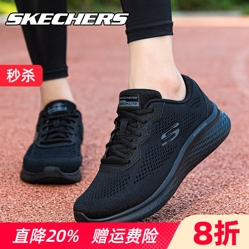 Skechers Women's Shoes Running Shoes Spring Official Flagship Mesh Breathable Black Casual Sneakers Women's