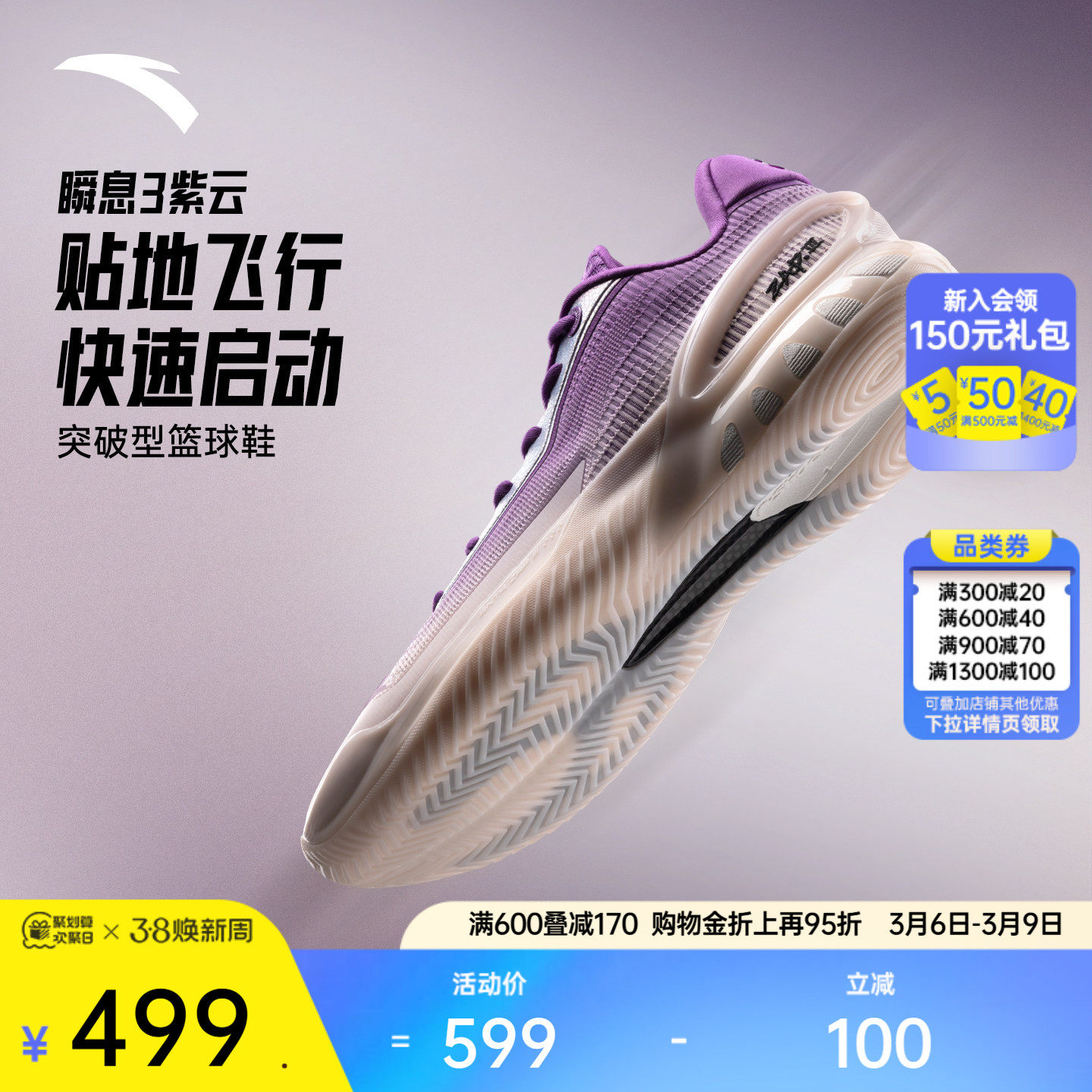 Anta Instant 3丨Carbon basketball shoes practical anti-slip and wear-resistant guard men's professional low-top sneakers for men