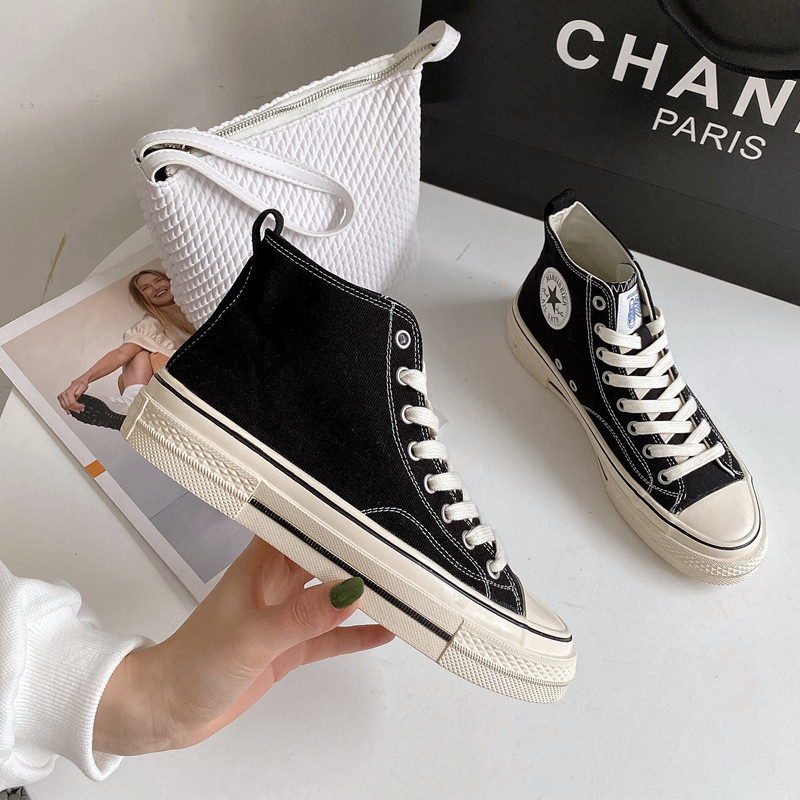 Black retro high-end platform high-top canvas shoes women's 2025 new summer explosive versatile casual board shoes