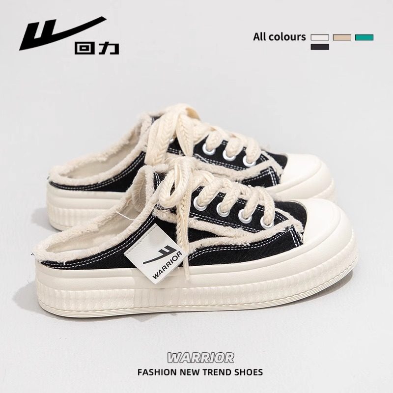 Pull back a kick of canvas shoes women's 2026 spring new versatile lazy toe wrap half slippers breathable casual board shoes