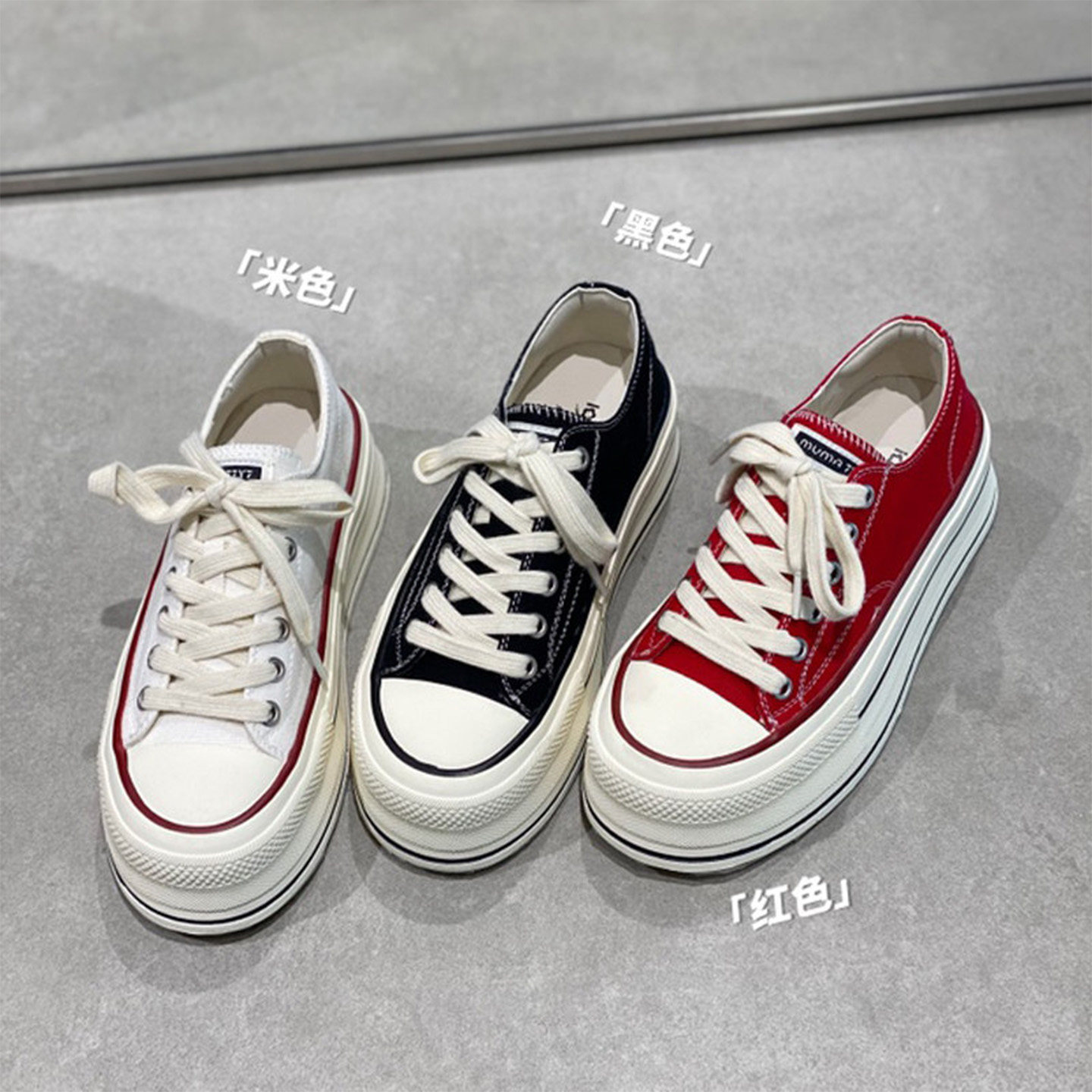 Italy SANLI~Ancora red platform canvas shoes women's new breathable and versatile comfortable height-increasing casual board shoes