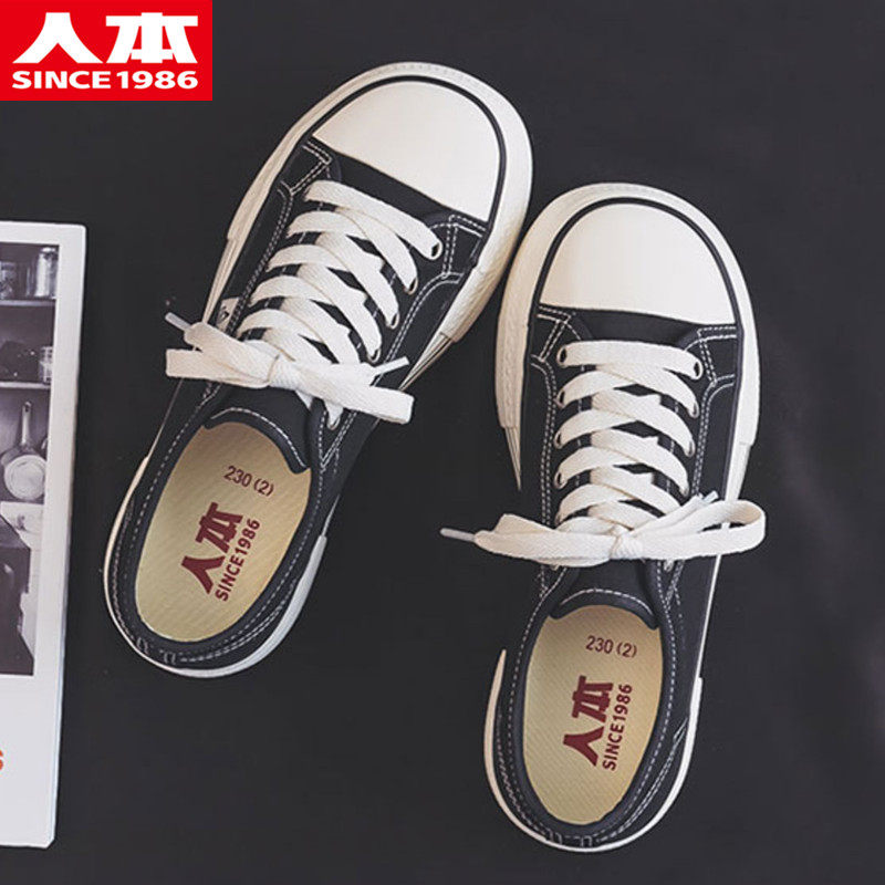 Pull-back women's shoes for the summer of 2025, new toe-toe semi-flipped canvas shoes, one foot, light and comfortable slip-on shoes, and white shoes