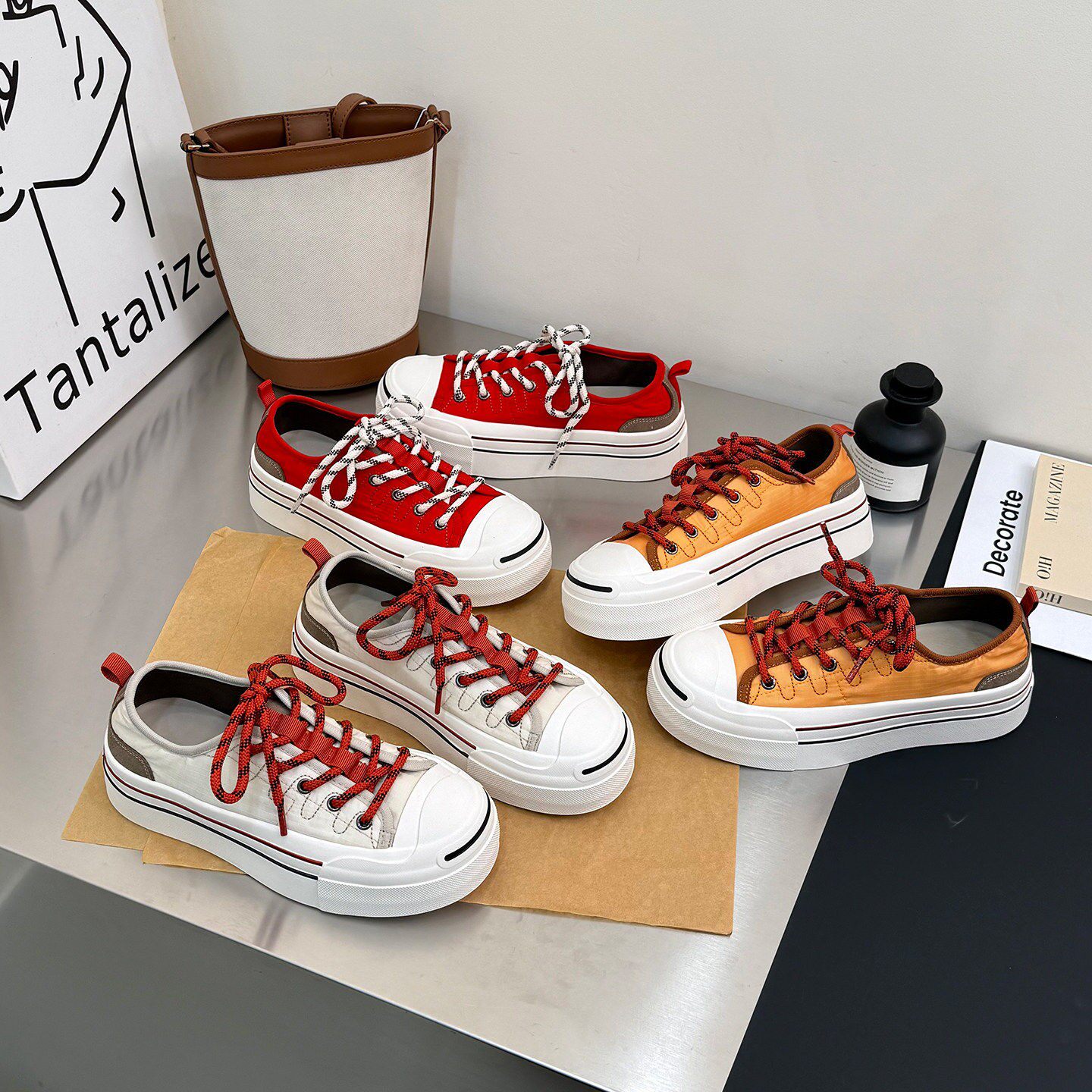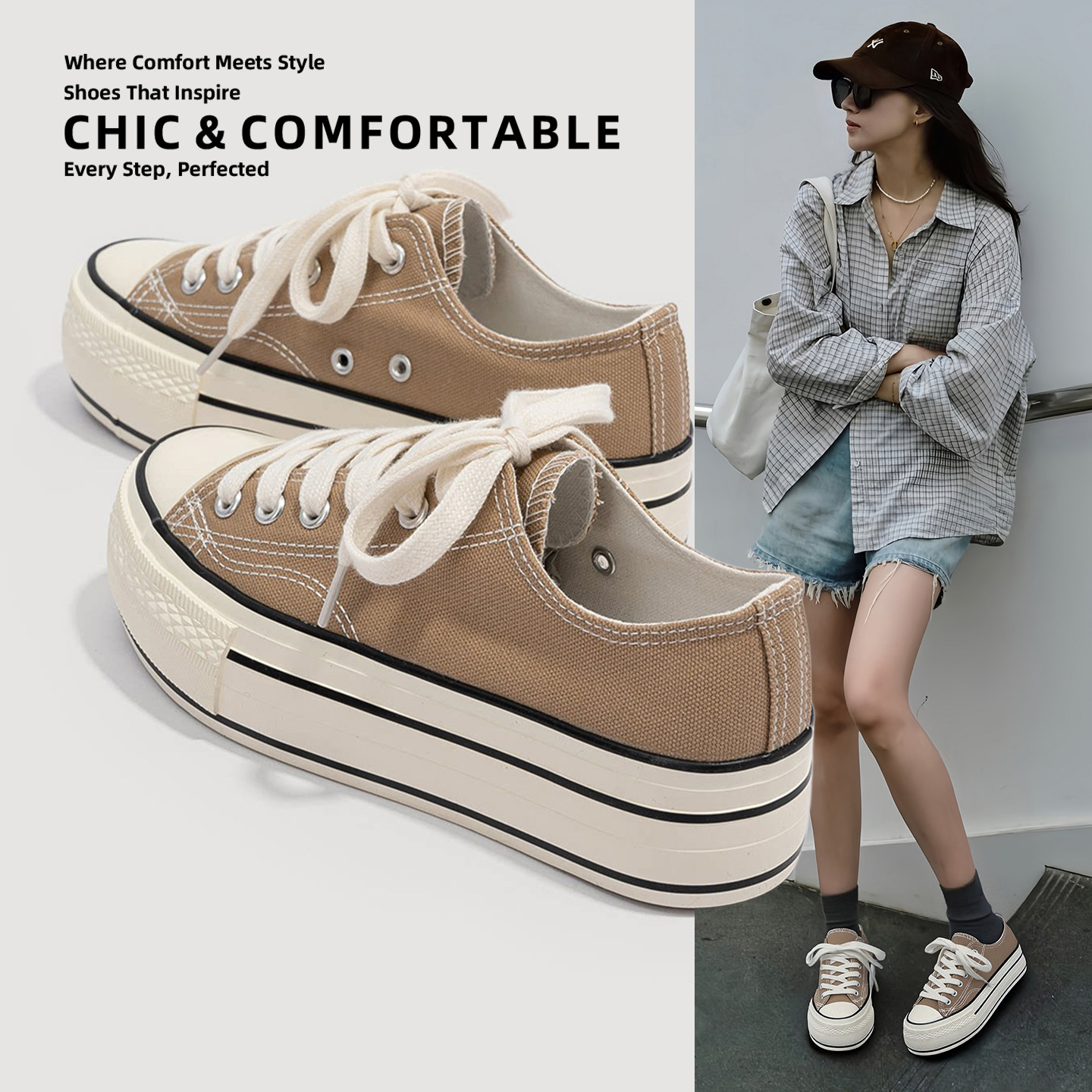 Hong Kong platform canvas shoes women's spring and summer breathable explosive small height increase versatile low-top board shoes lace-up sneakers