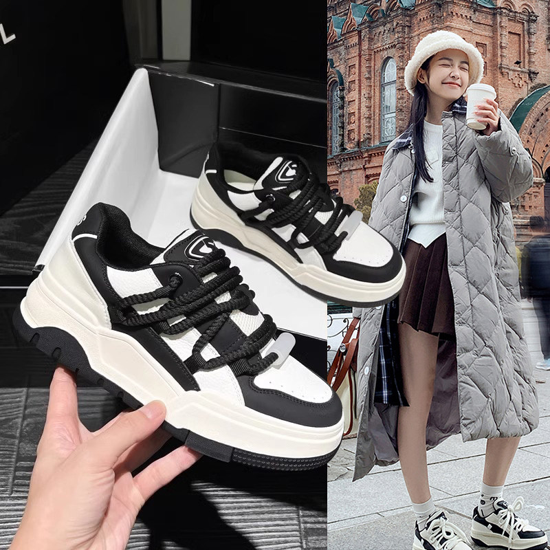 Hong Kong leather versatile white shoes women's 2026 spring and autumn new thick-soled height-increasing lightweight casual sports board shoes