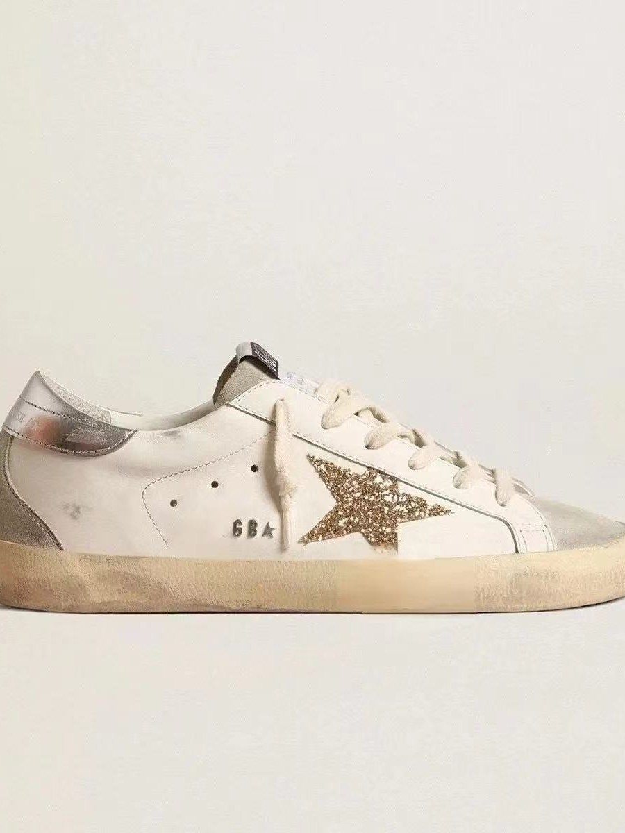 Men's and women's star shoes, GGD small dirty shoes, old board shoes, inner height increase dirty shoes, casual white shoes, silver tail gold star