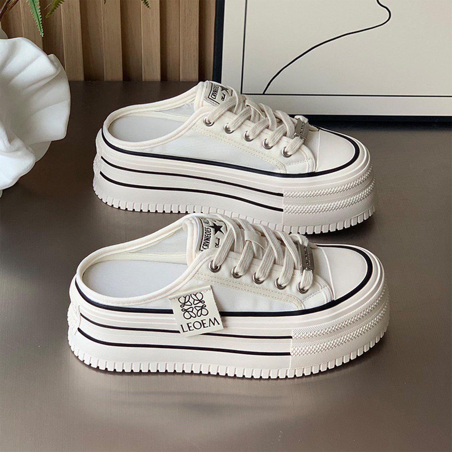 Pull-back thick-soled canvas shoes women's 2026 new spring white shoes lazy people wear half slippers on the outside of the explosive model