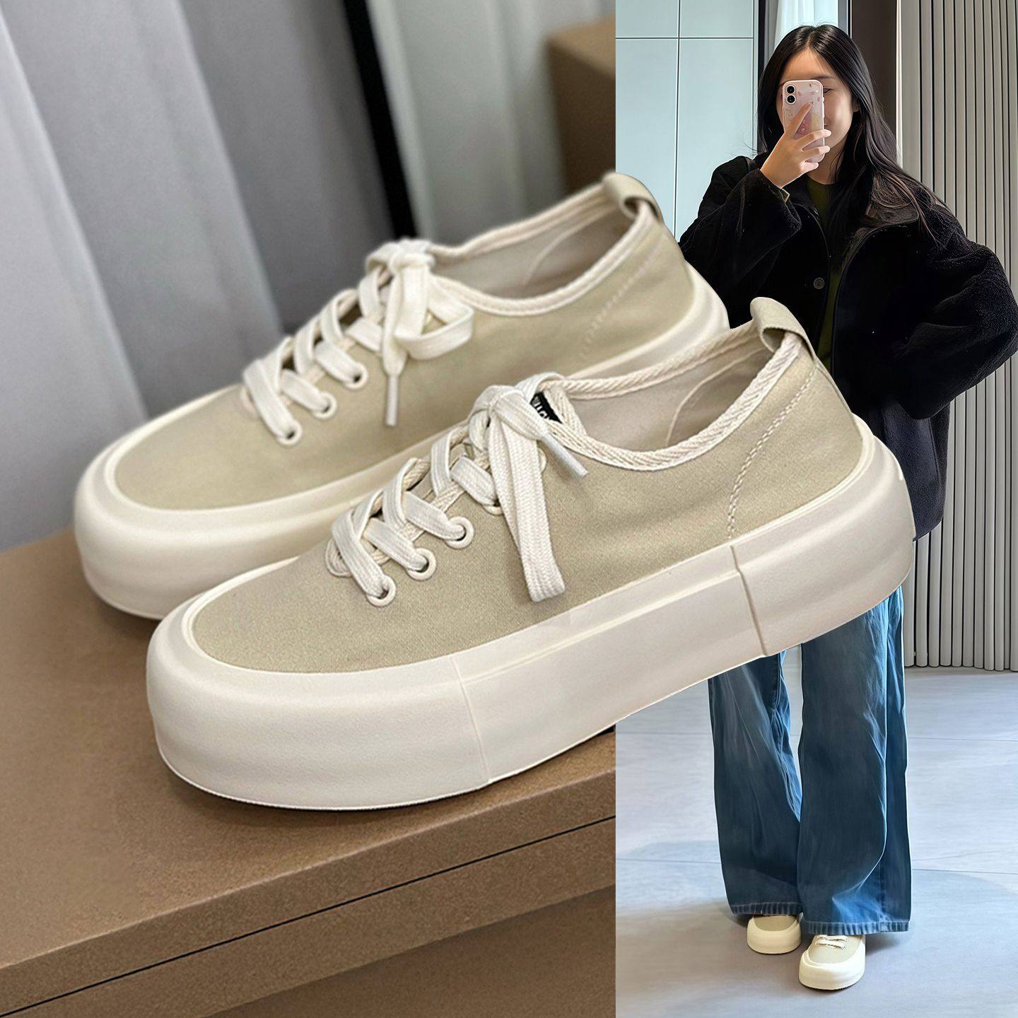 Hong Kong low-top muffin platform canvas shoes women's 2025 spring and autumn new casual height-booster shoes popular white shoes