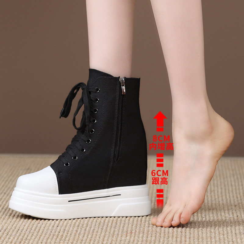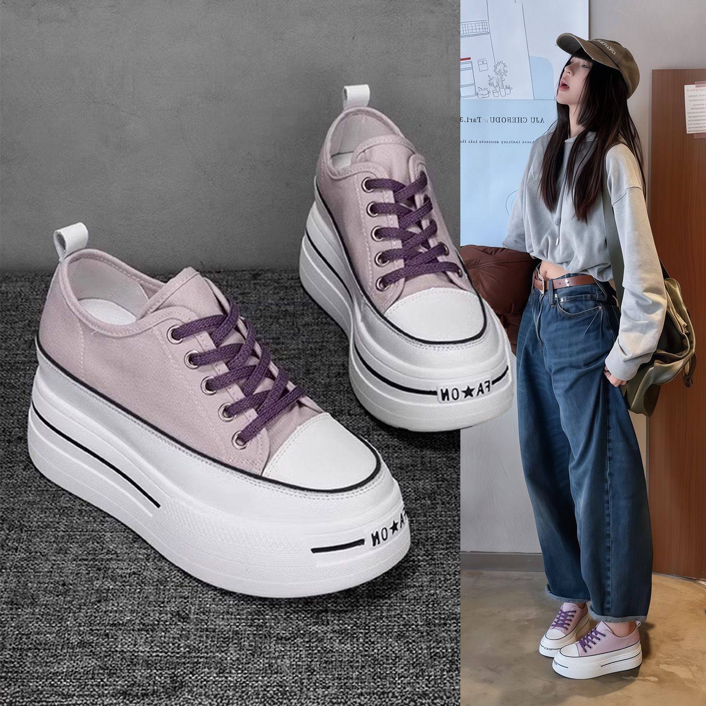 Hong Kong platform canvas shoes women's 2025 new spring and autumn muffin low-top versatile inner height increase women's shoes casual white shoes
