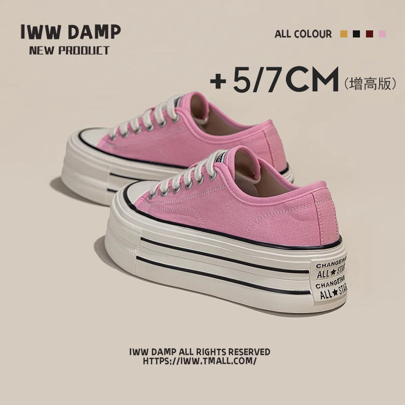 IWW thick-soled heightened pink lace-up canvas shoes women's low-top 2025 new candy sweet cool casual board shoes are versatile