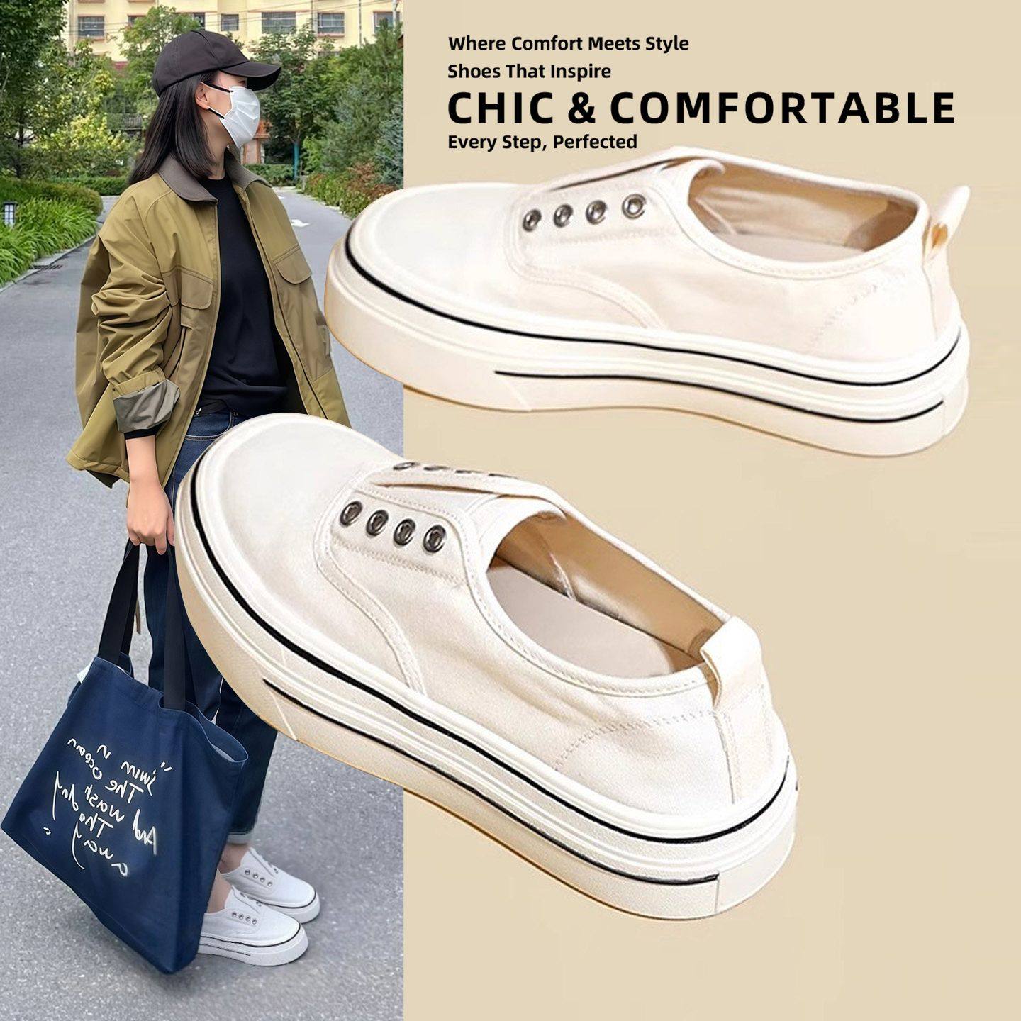 Hong Kong platform elastic one-foot canvas shoes women's 2025 new breathable casual shoes to increase height white shoes loafers