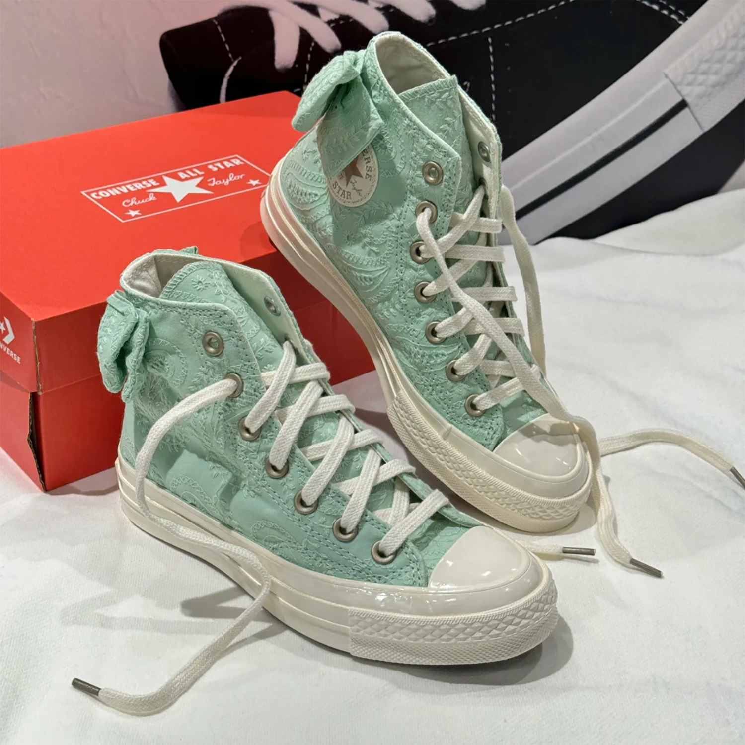 Genuine CONVERSE Mint Green Cashew Flower Bow High Top Women's Casual Canvas Shoes A10245C