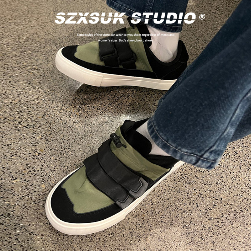 Men's shoes, trendy shoes, spring niche, black casual canvas shoes, Japanese retro and versatile sports big-headboard shoes, men's models