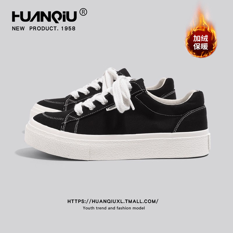 Global fleece platform black canvas shoes men's 2025 winter new casual sports versatile couple board shoes for men