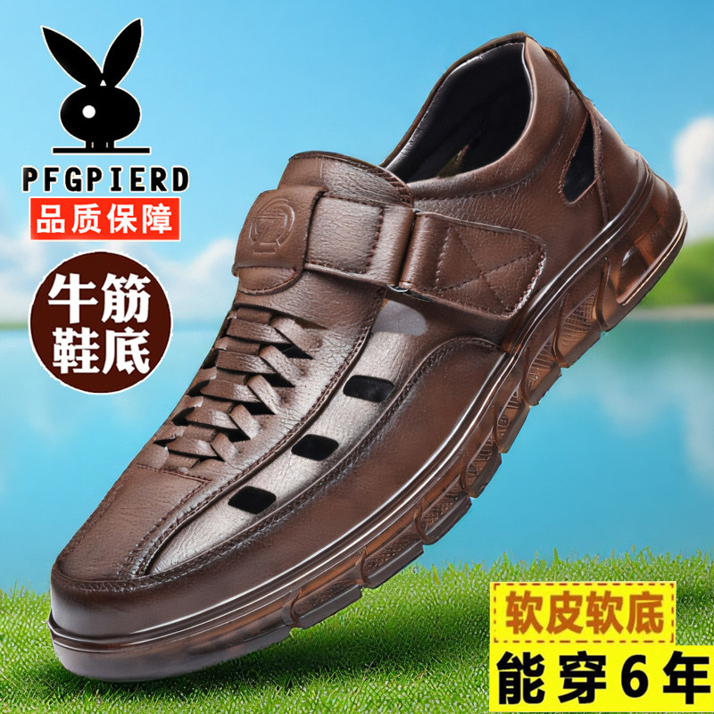 Official Genuine Cow Tendon Sole Sandals Men's 2026 New Leather Men's Hollow Men's Shoes Sandals Shoes Daddy Hole Shoes