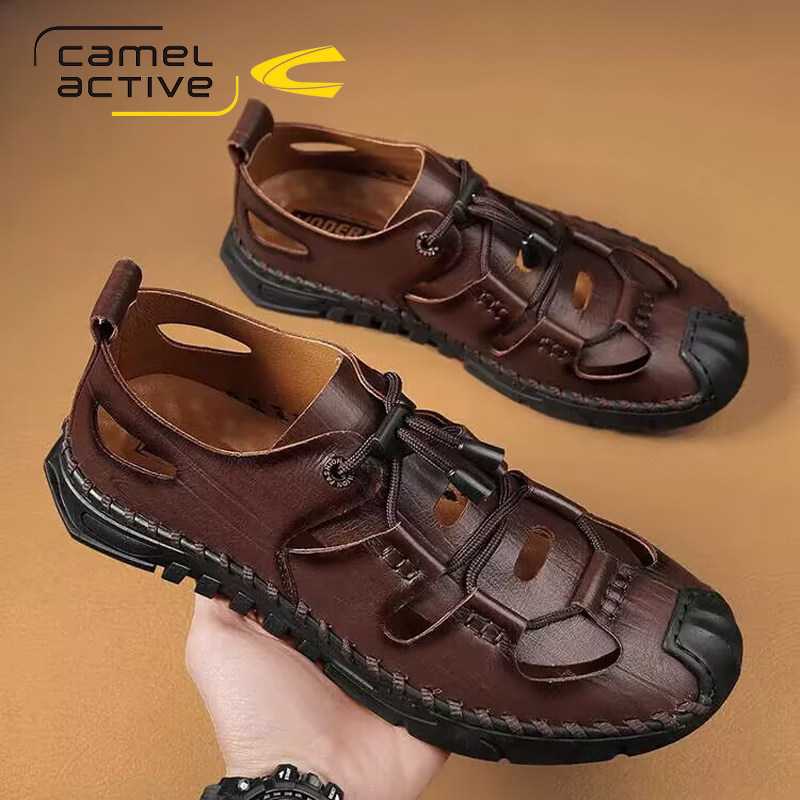 German Camel Dynamic Sandals Men's Genuine Leather Summer Breathable Hollow Hole Shoes Outdoor Slippers Lightweight Beach Shoes