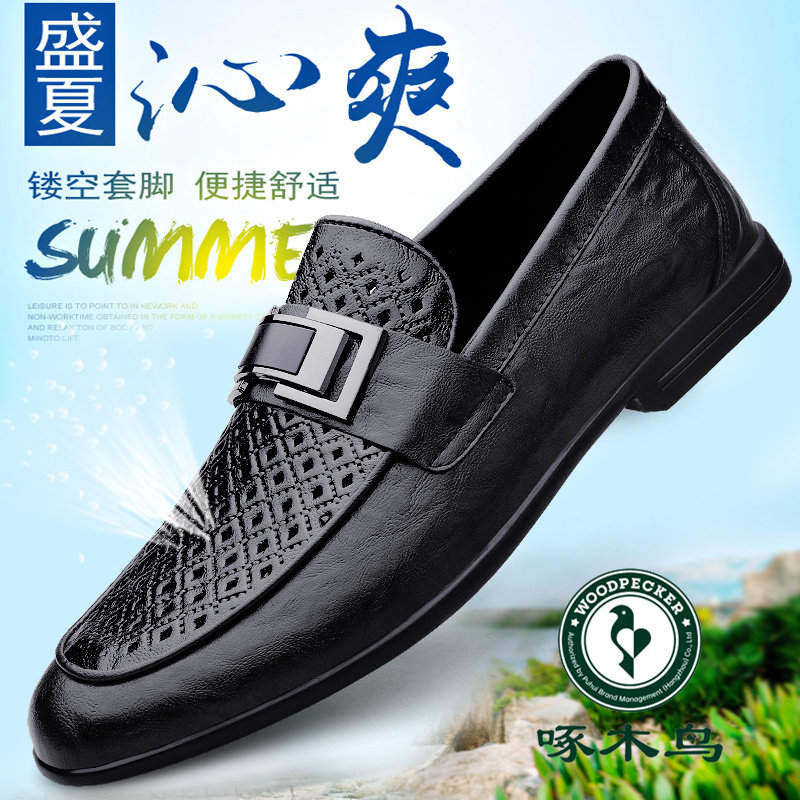 Woodpecker high-end men's shoes summer leather shoes with holes men's leather casual shoes hollow breathable bean shoes men's hole shoes