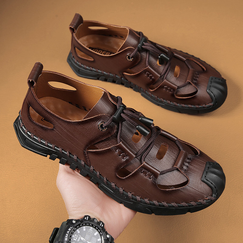 German camel dynamic summer leather sandals men's breathable business hole shoes wear sandals and dad shoes outside