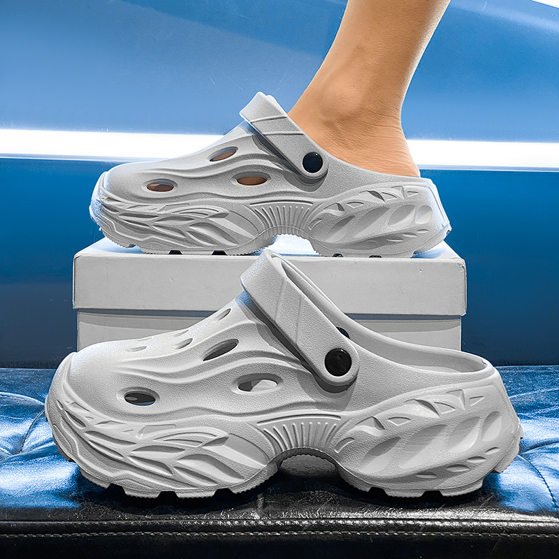 Space slippers, men's hole shoes, summer outdoor non-slip, breathable, thick sole to increase height, step on feeling, fishing, wear beach shoes outside