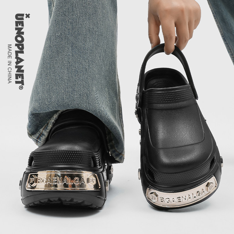 UENOPLANET2026 new summer hole shoes, women's platform soles, heightened one-foot half-slippers, men's back air sandals
