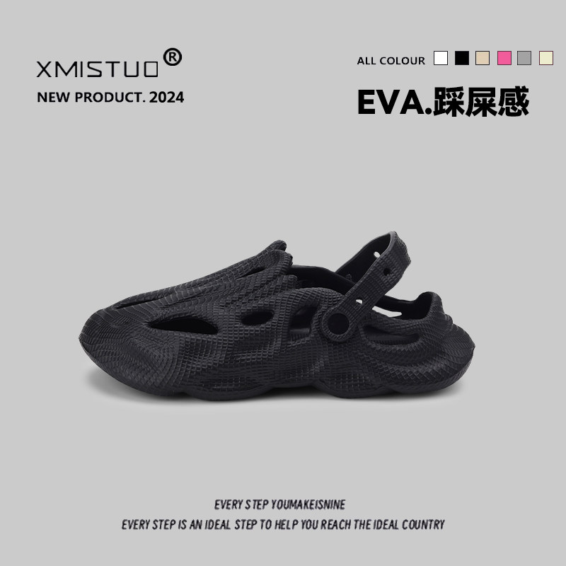 Japan MUJX quality 4.5cm stepping on feeling thick sole heightened hole shoes for men and women to wear sports sweat slippers in summer.