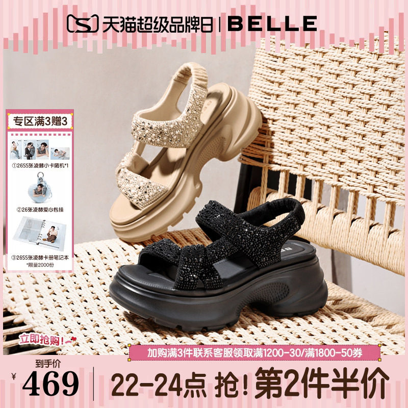 【Mother's Day Gift】Belle Starry Thick Sole Heightening Sports Sandals Women 26 Summer Breathable Shoes F4A1 Pre