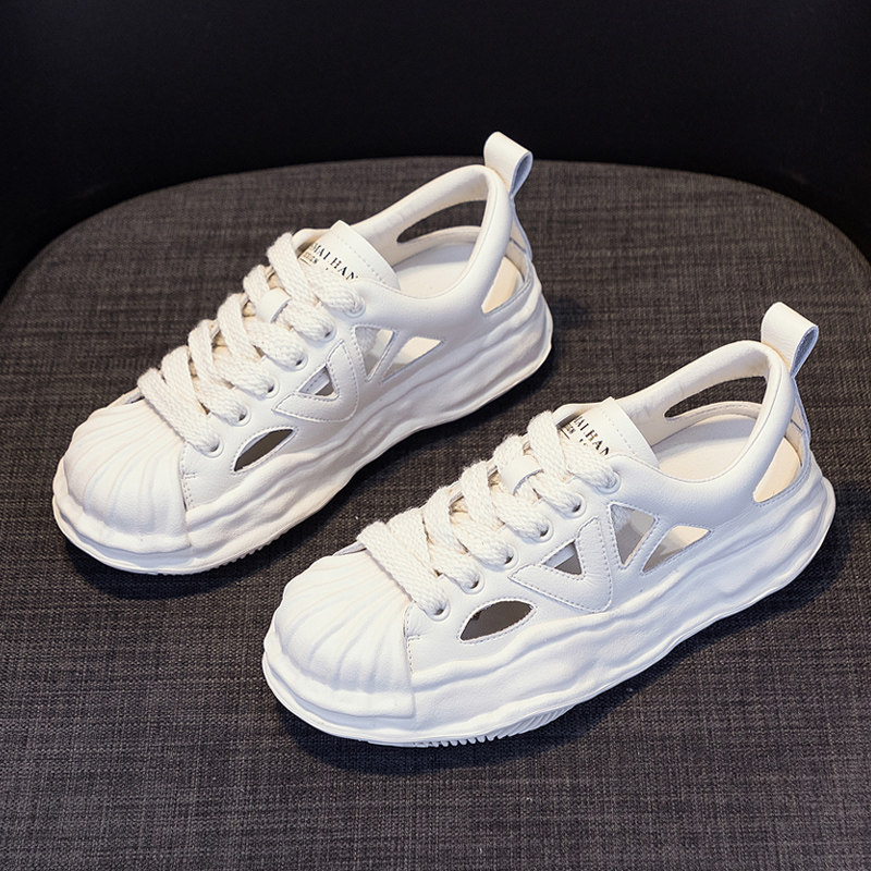 Hollow platform shell head leather white shoes women's summer 2025 new versatile summer breathable dissolving sports sandals