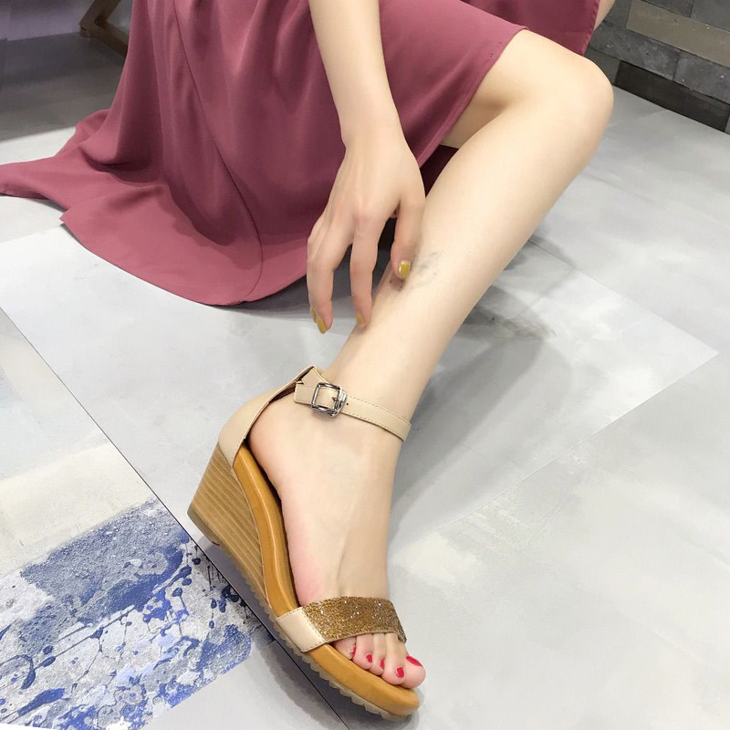 313233 small size Internet celebrity platform sole wedge sandals women's 2025 new muffin small man height leather shoes are versatile