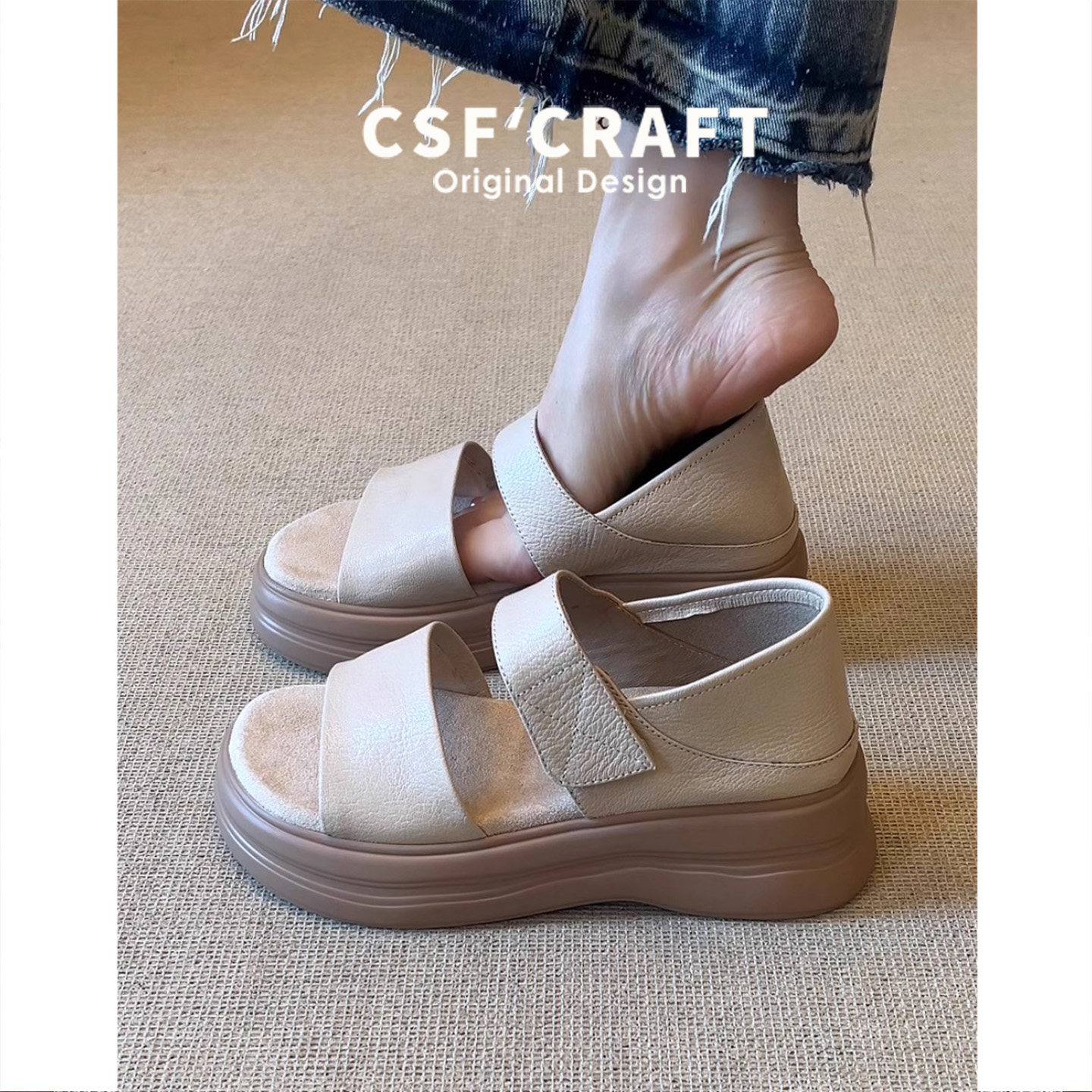 Sandals women's 2025 new summer leather toe hole shoes are versatile platform sole inner height increase sports casual Roman sandals