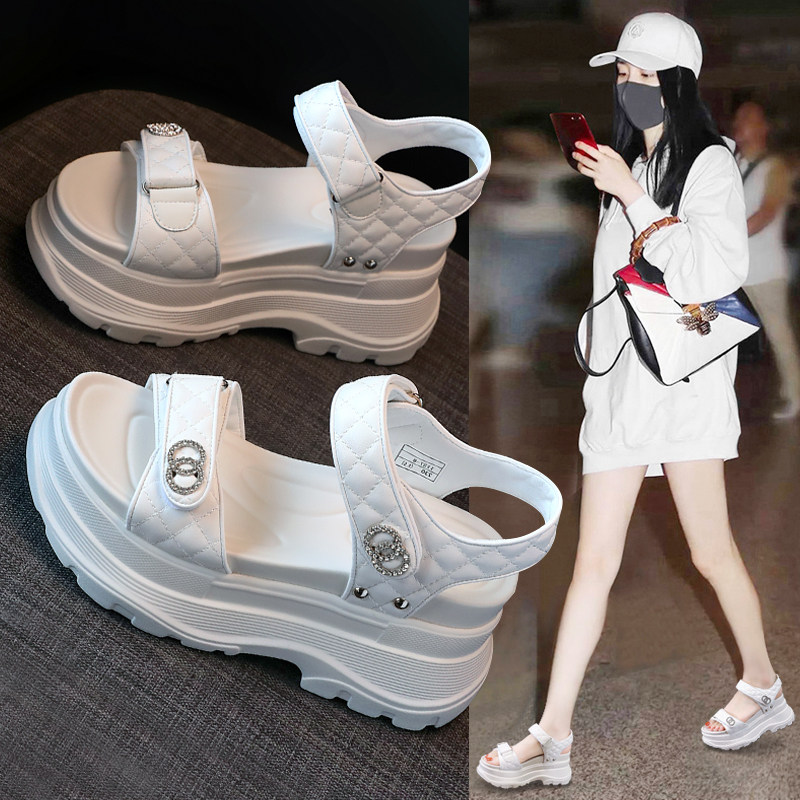 Platform sandals women's 2025 summer new height-increasing fashion versatile Internet celebrity Korean version of fashion muffins Roman beach shoes