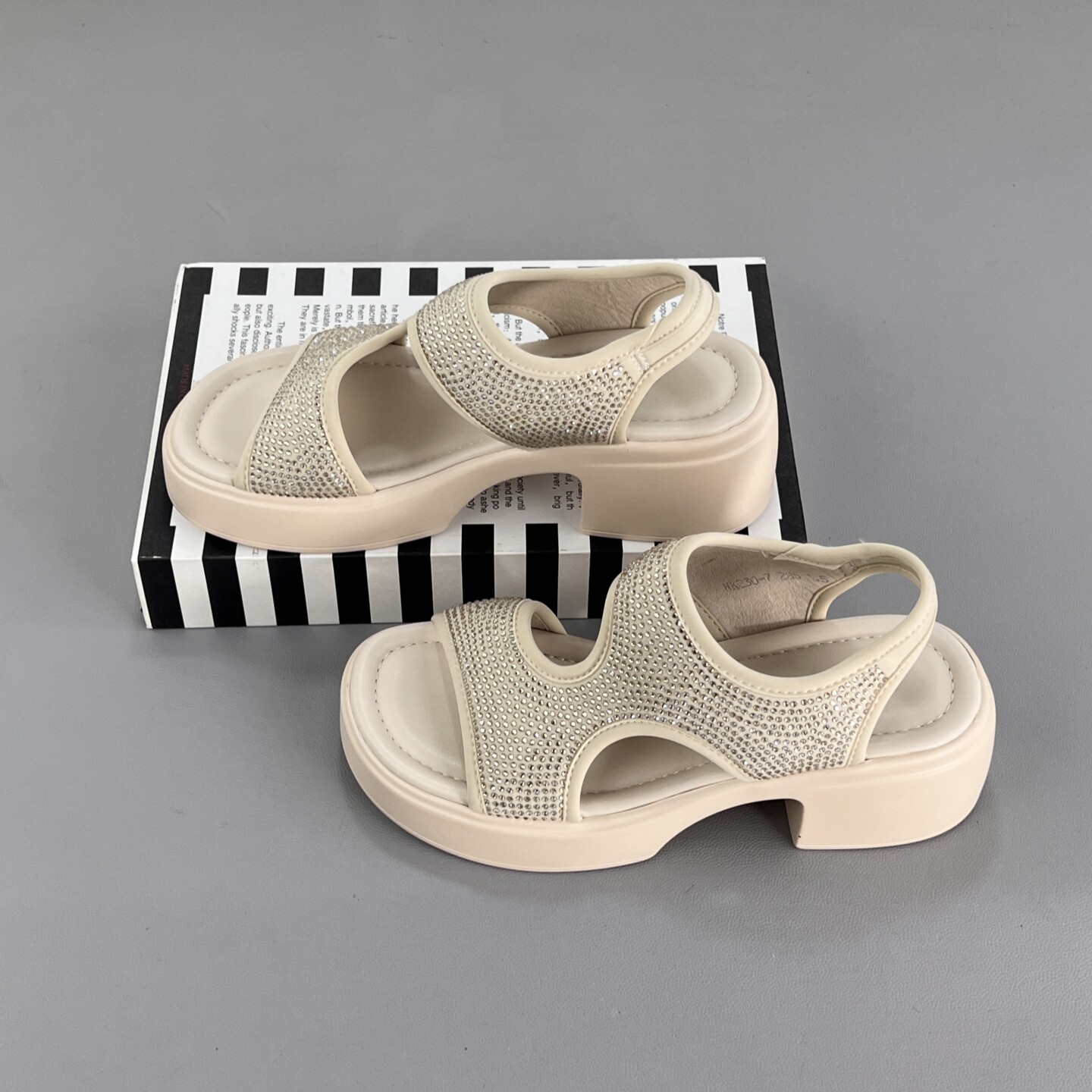Thick-soled lightweight small height-increasing sandals women's 2025 summer new rhinestone versatile Roman shoes casual beach shoes