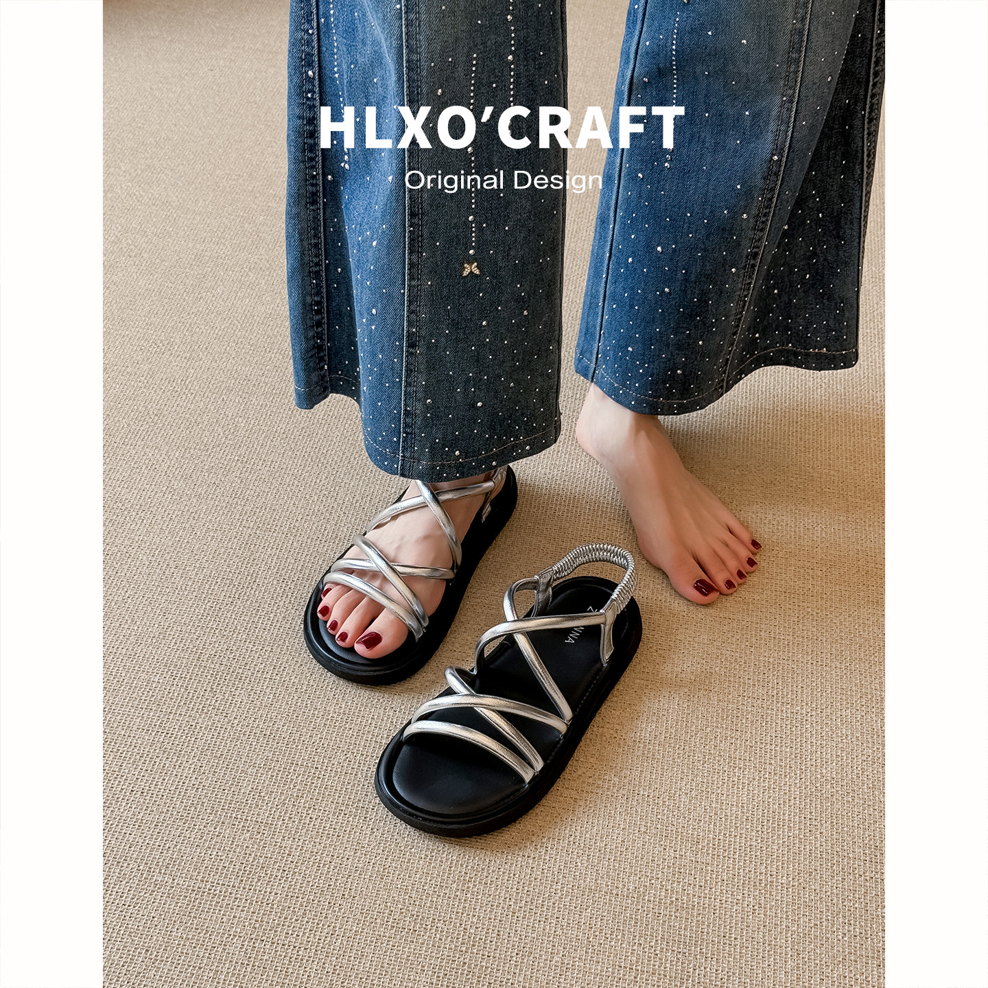 Genuine leather ~ retro silver platform sandals for women 2025 new non-tired flat versatile casual sandals with skirts