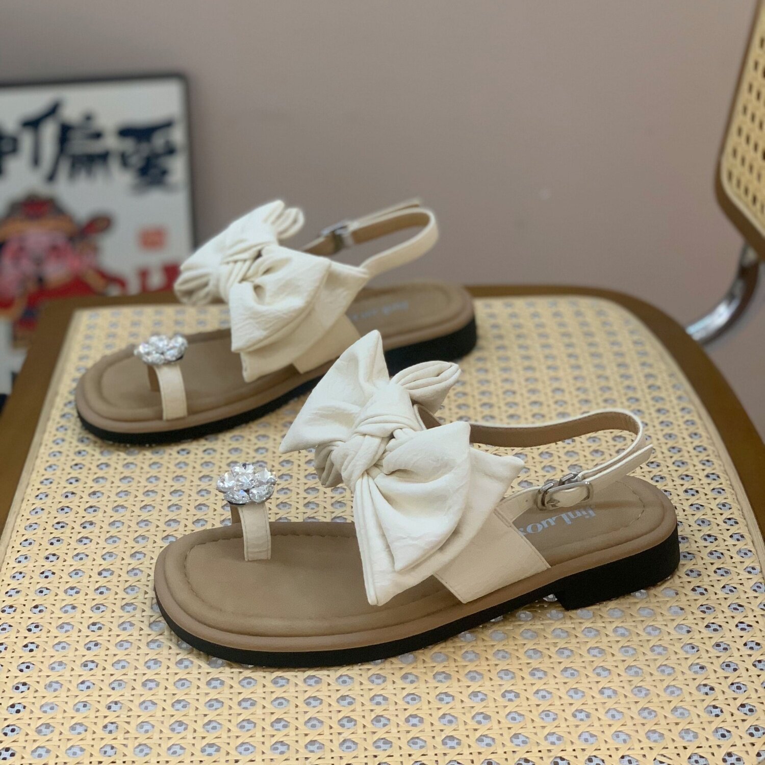 2025 summer new versatile flat casual sandals women's fashion bow slippery toe fairy-style buckle shoes