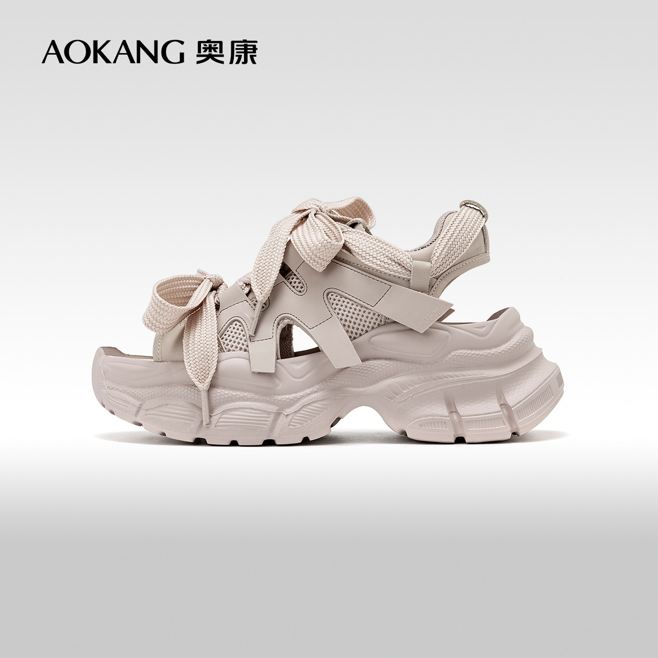 Aokang Women's Shoes Summer New Open-toe Platform Breathable Sandals Fashionable and Versatile Sports Beach Sandals