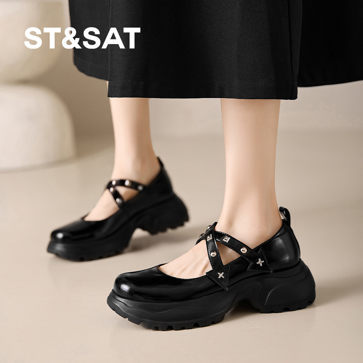 Saturday French new studded rhinestone Mary Jane shoes women's platform increase in height does not tire your feet to commute loafers small leather shoes