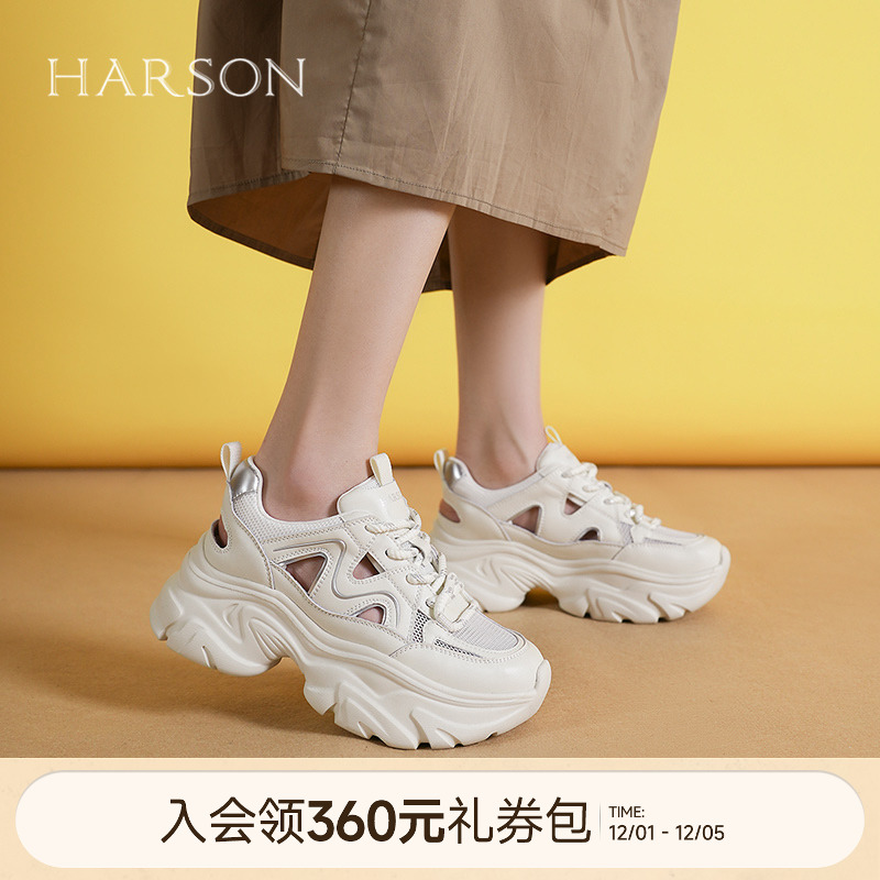 Hazen Daddy Shoes 2025 Summer New Platform Heightening Casual Sneakers Hollow Sandals Women's HCM251605