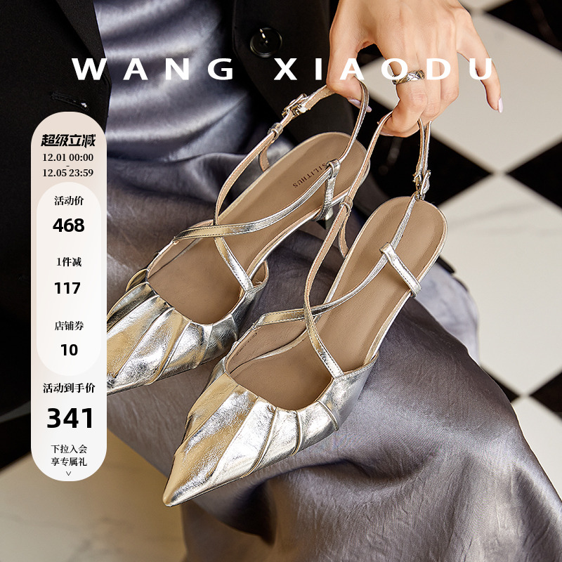 Fenghua ○ High quality ~ cross with pointed back hollow sandals women's summer leather pleated high heels