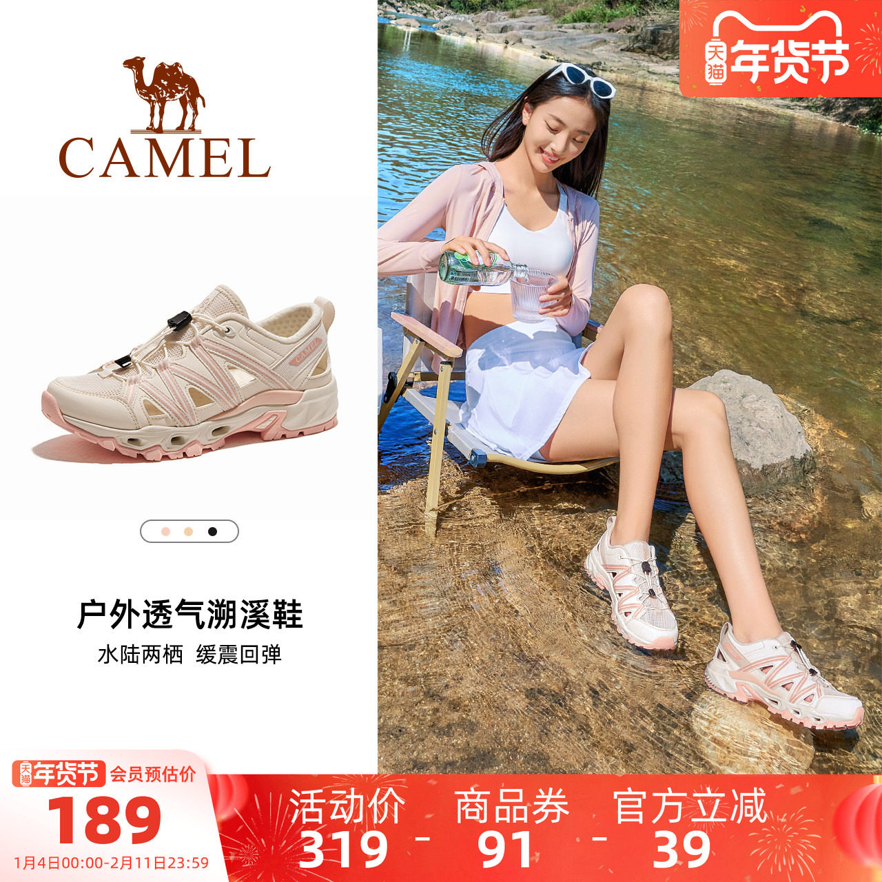 Camel women's shoes 2025 summer new outdoor sports sandals women's breathable hollow beach shoes wading river tracing shoes