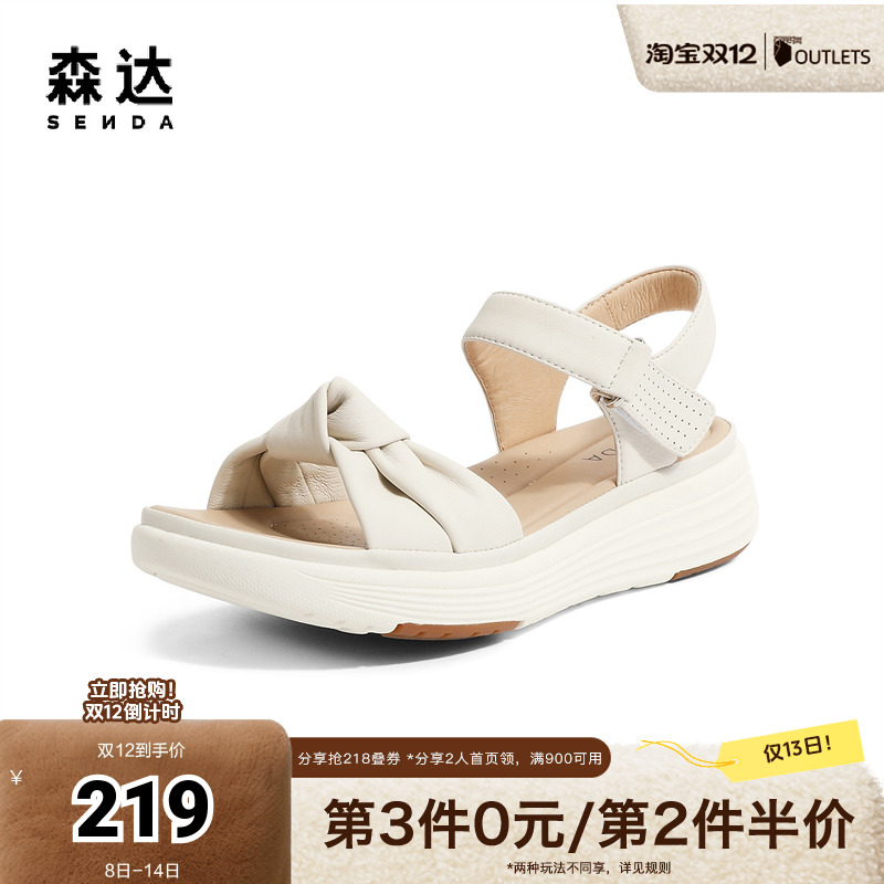 Senda leather sandals women's 2024 summer new shopping mall with the same comfortable platform SLV02BL4