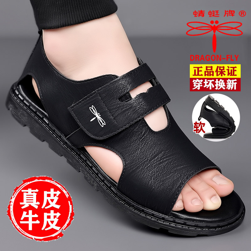 Dragonfly Sandals 2026 New Summer Genuine Leather Casual Beach Shoes Non-slip Soft Sole Men's Breathable Sandals