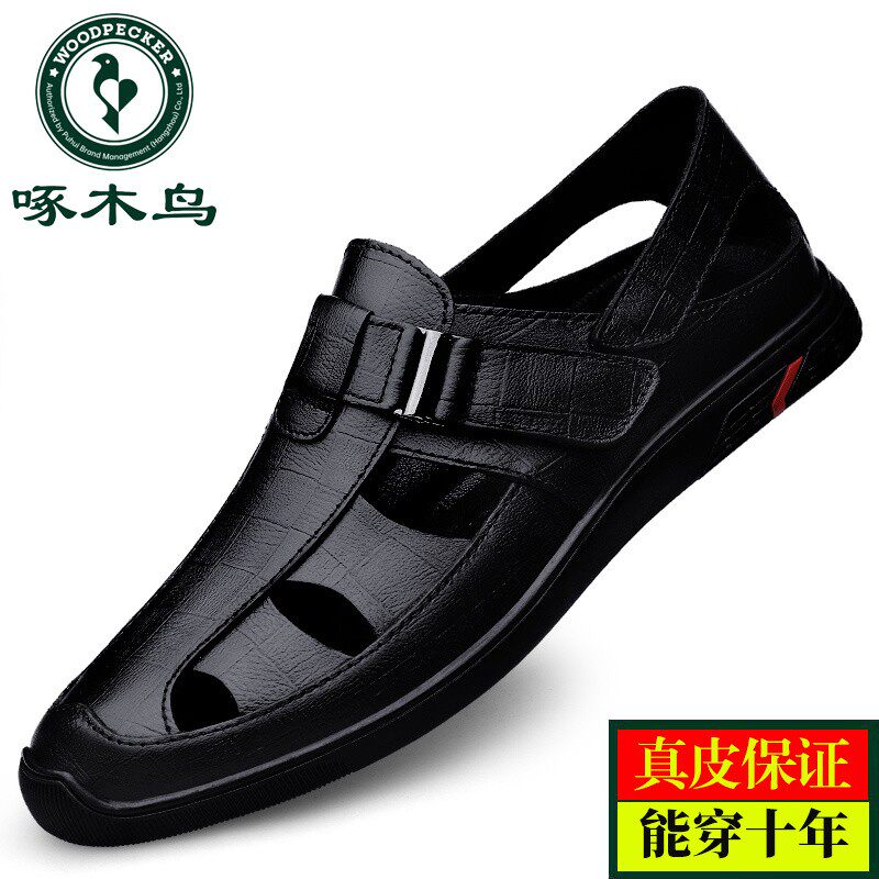 Woodpecker sandals, summer leather hollow casual sandals, soft leather soft soles, middle-aged dad shoes, hole shoes, men's shoes