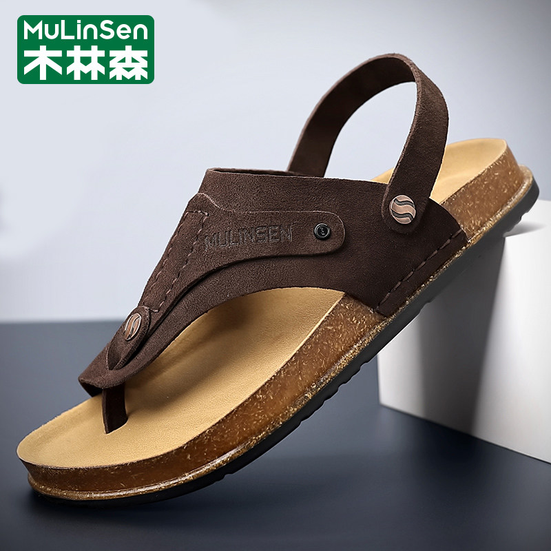 Mulinsen Sandals Men's 2026 New Summer Cork-Sole Birkenstocks Breathable Clip-toe Slippers Wear Dual-purpose Sandals Outside