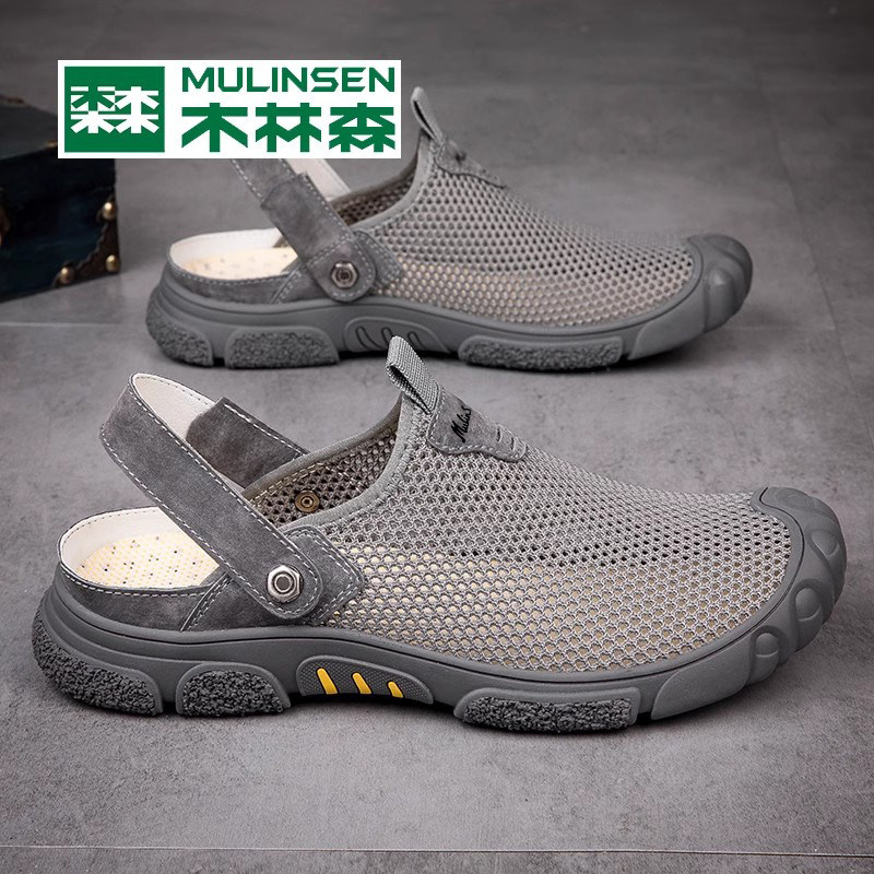 Mulinsen men's sandals dual-purpose summer breathable hollow head bag hole shoes casual sports beach wading slippers